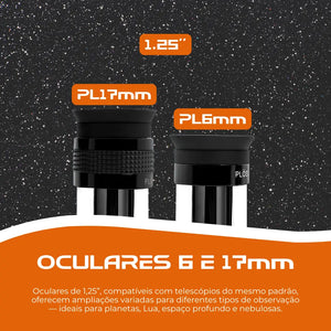 Oculares: Plössl 6 mm e 17 mm (AFOV ~50°)