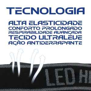 Fixação: Faixa elástica premium, ajustável; compatível com capacete/gorro